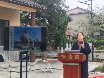 在送文化环节,我局银发专家们纷纷亮出绝活,通过亲切自然的讲解和精彩纷呈的文艺表演,让文化魅力深入村民心中。市文化服务队成员、六朝博物馆荣誉志愿者、江苏省委党校退休教师罗建,以生动鲜活的语言带领现场村民“穿越”千年,从文物故事到历史脉络,细致解读南京六朝历史文化,展现古都南京深厚的文化底蕴,激发大家对本土历史的认同与自豪。经典京剧《红灯记》片段,字正腔圆的唱腔、饱含深情的演绎赢得阵阵掌声;男声独唱《再见了大别山》悠扬婉转,勾起现场村民的情感共鸣;唢呐独奏《欢天喜地》节奏明快、喜气洋洋,博得声声喝彩,将现场氛围推向高潮。