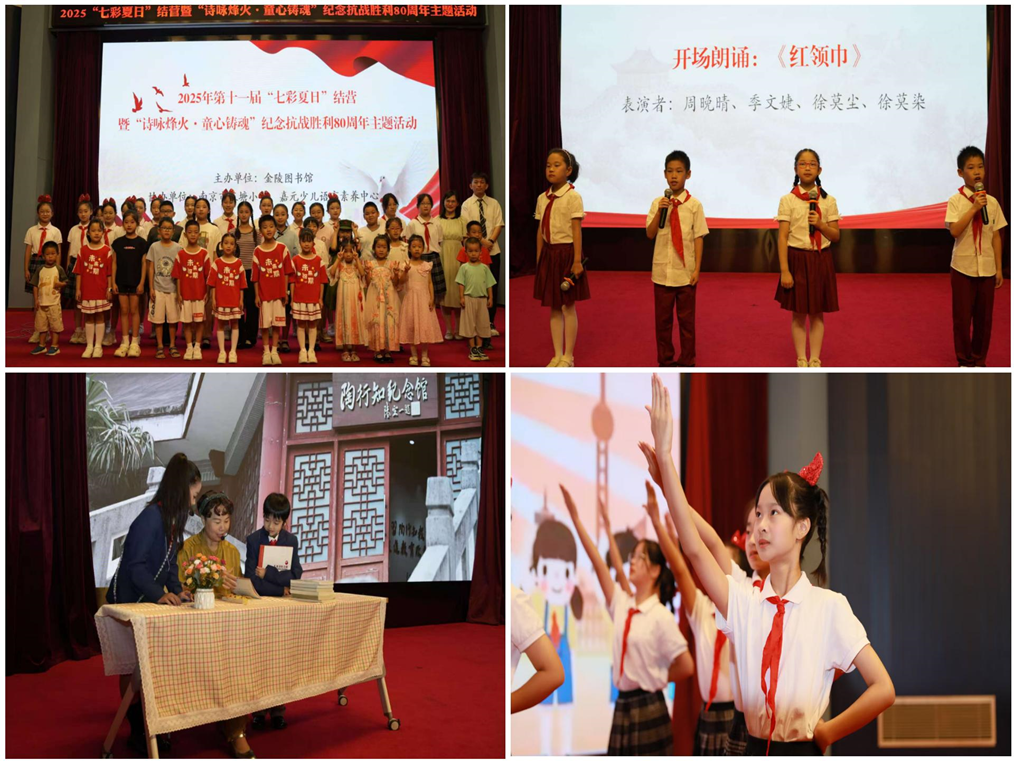 近日,由市文旅局指导,金陵图书馆主办的2025年“七彩夏日”少儿暑期夏令营结营暨“诗咏烽火·童心铸魂”抗战胜利80周年主题活动成功举办。本次活动在对为期49天