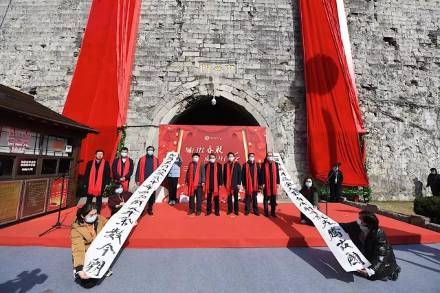 “一百年岁月流金,大业有成,射斗龙光腾古国;九万里河山聚宝,中华无恙,冲天牛气数今朝!”1月30日上午,由南京市文化和旅游局、新华报业传媒集团、中国银行江苏省分行主办,南京城墙保护管理中心、南京晨报、“我们的节日”南京工作室承办,江苏省书法家协会、江苏省楹联研究会特别支持的2021年第六季“城门挂春联,南京开门红”揭联仪式在壮丽的中华门隆重举行。