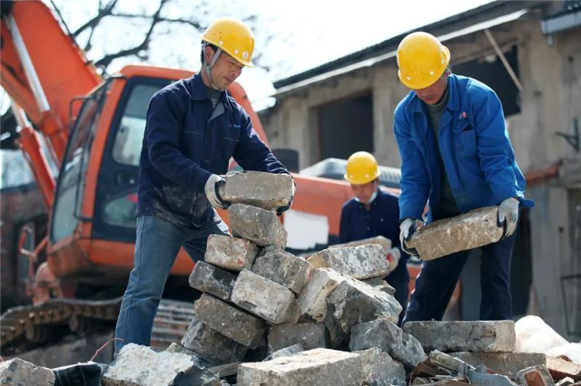 由于上世纪五六十年代,城砖被当作建材建造房屋,所以在老旧小区的拆迁工地现场经常发现有大量散落城砖。近期,热心市民反映石榴新村更新改造项目现场发现大量明城墙砖。城砖回收工作人员第一时间前往现场,借助撬棒等工具,对由城墙砖砌成的墙体进行人工拆除,减少对城墙砖的伤害,并将一块块40斤重的城砖码放整齐,等待运至城砖仓库。
