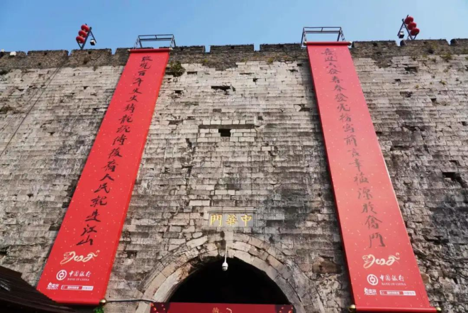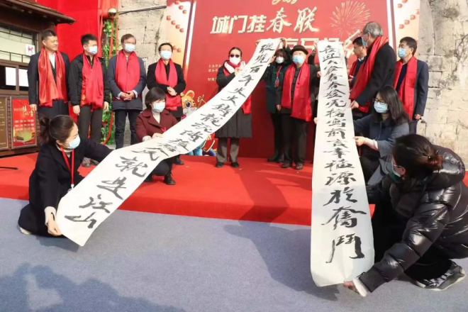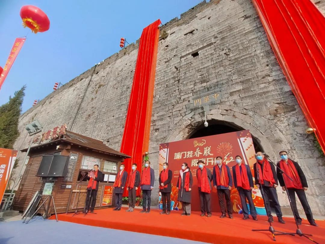 1月16日上午,由南京市文化和旅游局、新华报业传媒集团、中国银行江苏省分行主办,南京城墙保护管理中心、南京城墙研究会、南京城墙保护基金会、“我们的节日”南京工作室、南京晨报、中国银行南京分行承办,江苏省书法家协会、江苏省楹联研究会特别支持的2022年第七季“城门挂春联,南京开门红”揭联仪式在中华门隆重举行。