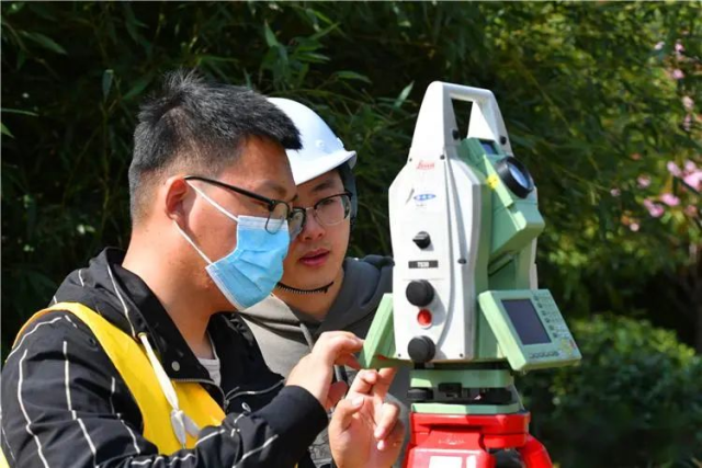 在借助监测设备自动收集数据之外,文物保护工作者会定期在城墙周边的固定观测基准点上,用全站仪人工采集数据,并把数据录入到监测预警平台,和往期数据进行比对,推算城墙变化。