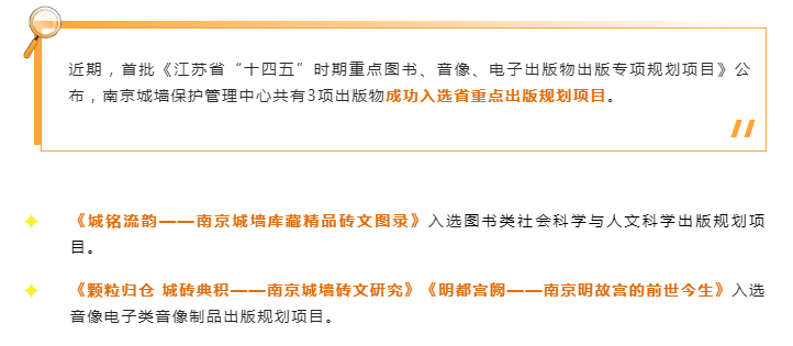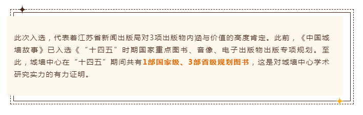 喜报 | 城墙中心多项出版物入选《江苏省“十四五”时期重点图书、音像、电子出版物出版专项规划项目》