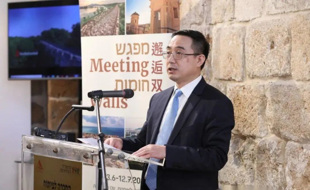 为庆祝中以建交30周年,6月13日,由特拉维夫中国文化中心、南京市文化和旅游局、阿卡市政府等共同主办的《邂逅双城》南京-阿卡城墙图片展在以色列北部古城阿卡市乌克什博物馆开幕。中国驻以色列大使蔡润、阿卡市长西蒙·兰克利、特拉维夫中国文化中心主任陶晨、以色列文物局代表等出席开幕式。