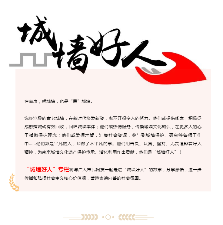 “明城墙的保护是社会发展和不断进步的必然。”吴文兴一边“干”还一边“想”,他对城砖回收工作提出了许多建设性的建议,有些也已经付诸实施。