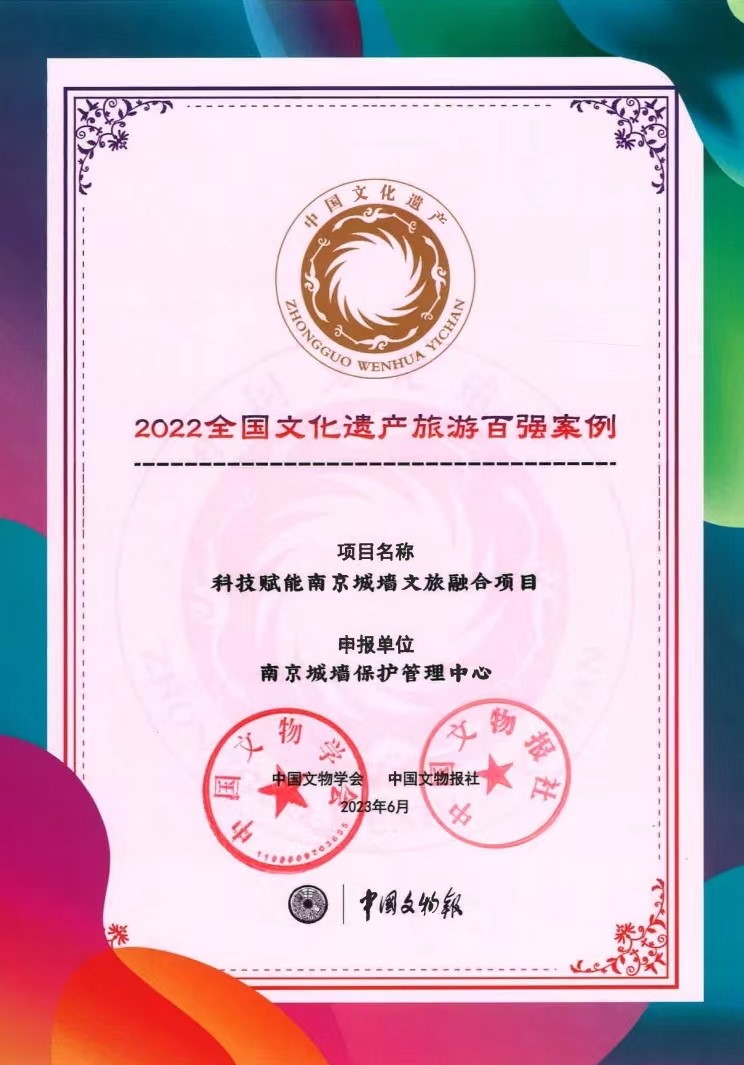 喜报 | “科技赋能南京城墙文旅融合项目”入围2022年全国十佳文化遗产旅游案例30强