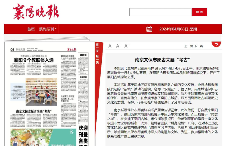 4月5日,春风和暖,南京城墙保护志愿者协会的5名志愿者来到曾经同是三国名城之一的襄阳,在襄阳拾穗空间举行了一场名为“南京&襄阳城墙双城记”的志愿交流活动。