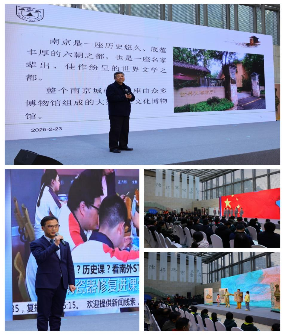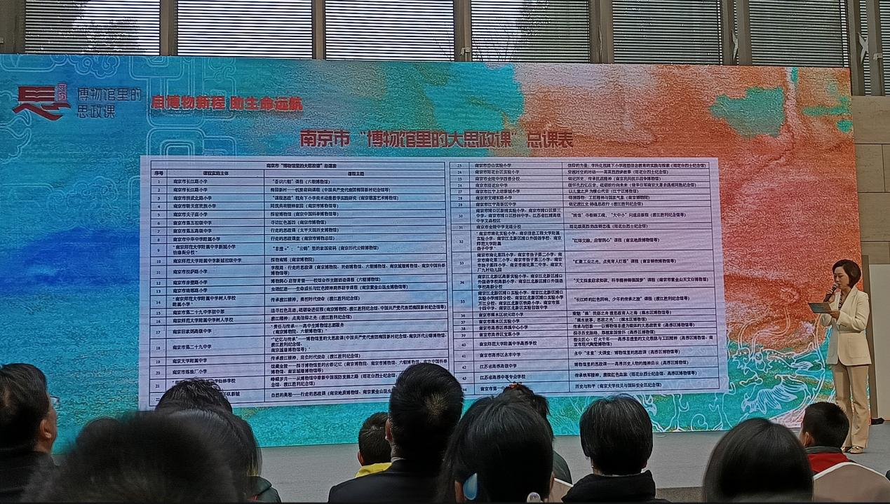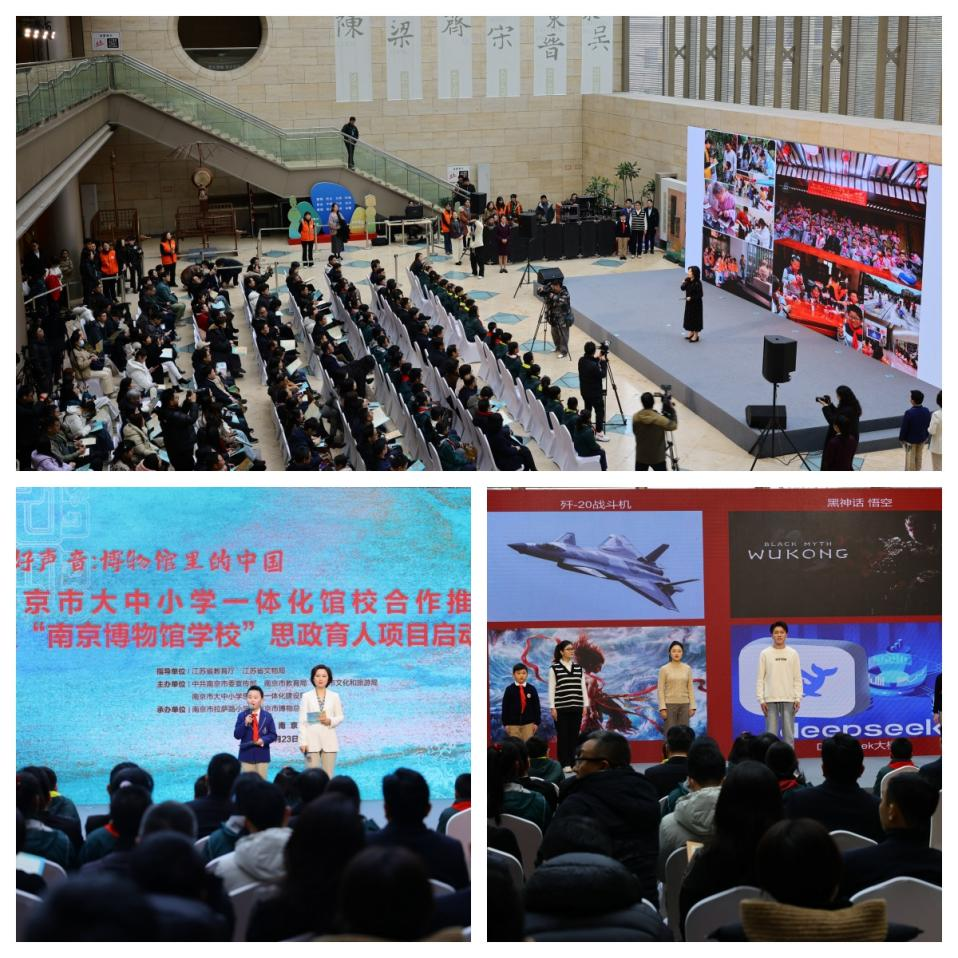 活动中省市相关领导共同启动了“南京博物馆学校”思政育人项目。现场发布了100节“博物馆里的大思政课”,包括全市各级各类学校作为实施主体,主动与博物馆合作开展的50节“大思政课”,以及全市各级33家博物馆作为实施主体,面向全市大中小学(幼儿园)开展的50节“大思政课”。这些课程是前期面向全市备案博物馆和各类学校征集而来的。近期,市教育局和市文旅局还将联合评选2025年“博物馆里的大思政课”精品课程。未来,南京文旅将继续推进馆校合作,紧紧围绕立德树人根本任务,发挥好博物馆教育功能,共同书写南京市“博物馆学校”思政育人项目的新篇章。同时,“南京博物馆教育资源库”建设也将适时启动。